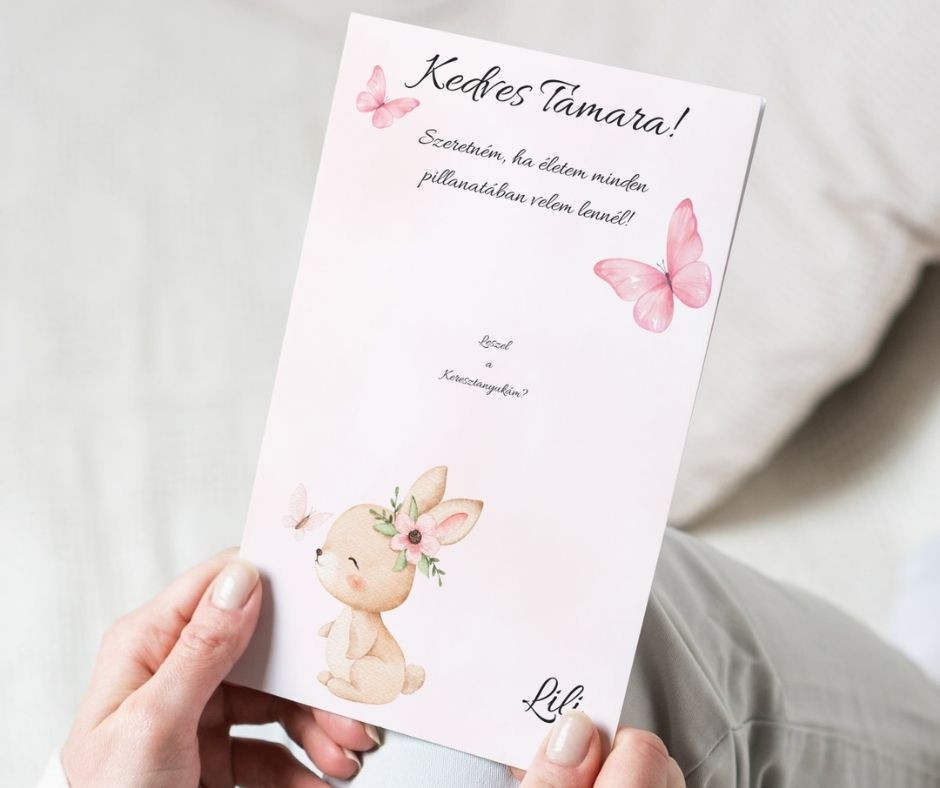 Keresztszülő felkérő sorsjegy - Baba nyuszi