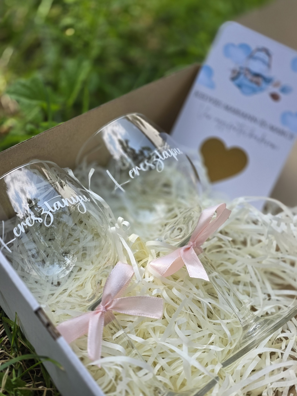 Keresztszülő felkérő szett - boros pohárral, kaparós sorsjeggyel