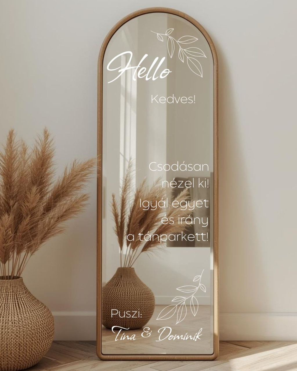 Esküvői tükör matrica - leves motívummal